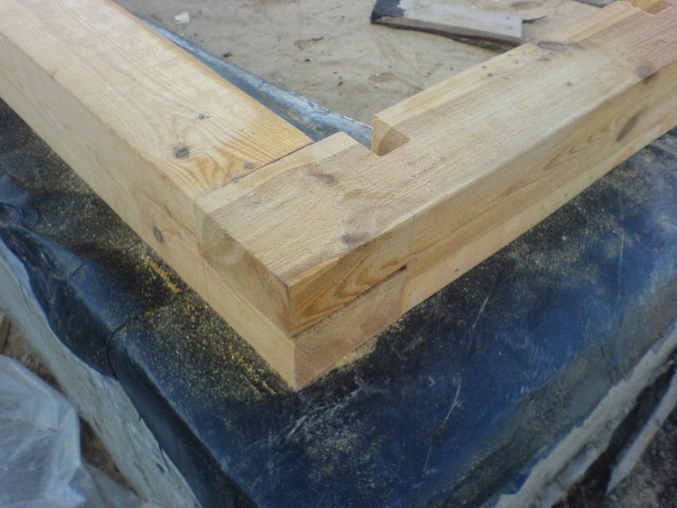 Или использовать более толстый слой мастики. - Под брус укладывают деревянные подкладки.